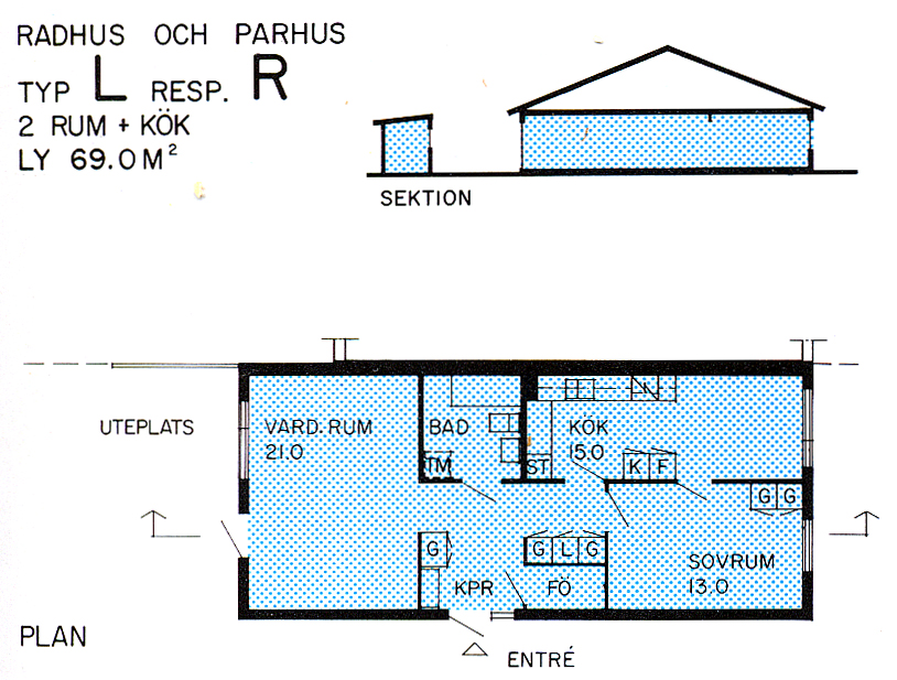 Planritningar Planritningarna nedan är hämtade från områdets ursprungliga presentation från 1981 och gäller de som är aktuella för områdets bostadsrätter. Genom att klicka på respektive bildrubrik får du en större bild i nytt fönster. Typ L och R 2 rum + kök